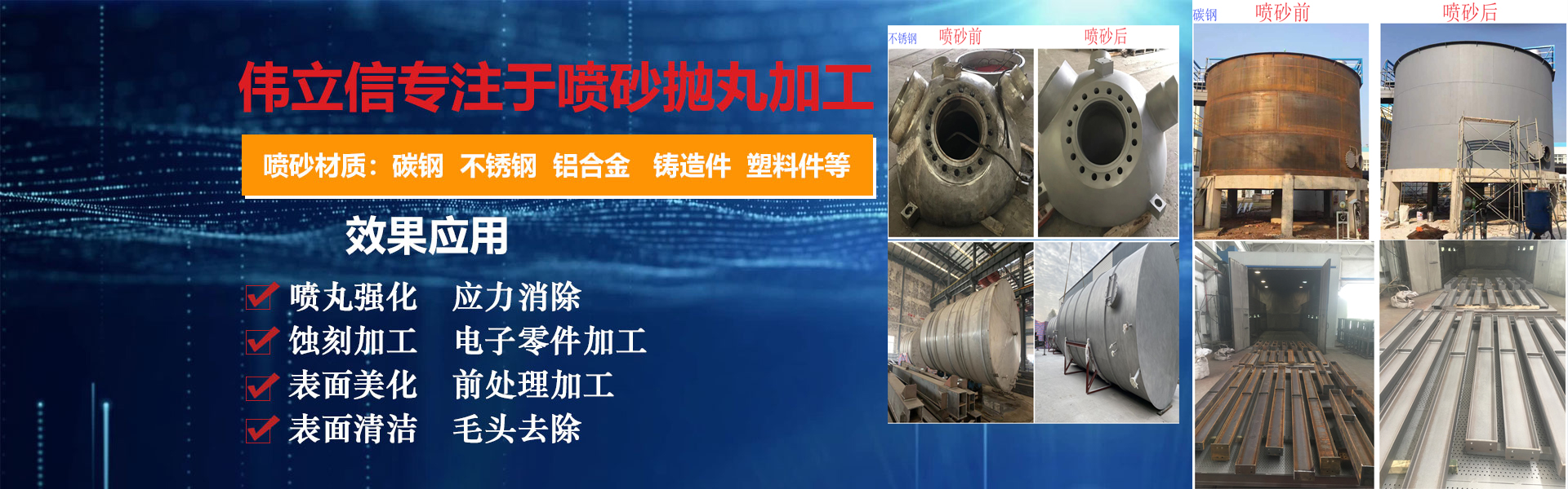武漢偉立信機(jī)械設(shè)備有限公司(噴砂熱線:18186495283)是一家從事表面涂裝和表面清理設(shè)備的廠家,公司位于武漢市武昌區(qū)。是一家集表面涂裝和表面清理設(shè)備科研、開(kāi)發(fā)、生產(chǎn)、銷售、服務(wù)于一體的綜合型企業(yè)。     公司自創(chuàng)建以來(lái),一直秉持認(rèn)真、負(fù)責(zé)的態(tài)度,以其科學(xué)而嚴(yán)密的管理,先進(jìn)而不斷創(chuàng)新的技術(shù),致力于表面處理設(shè)備的研制和開(kāi)發(fā),主要產(chǎn)品有:手動(dòng)噴砂機(jī)、自動(dòng)噴砂機(jī)、開(kāi)放式加壓噴砂機(jī)、干濕式噴砂機(jī)及大型噴砂房,拋丸機(jī),除塵設(shè)備,另可根據(jù)客戶要求定做。低價(jià)經(jīng)營(yíng)各類噴砂磨料:玻璃珠、鋼砂、鋼丸、不銹鋼丸、鋼絲切丸···